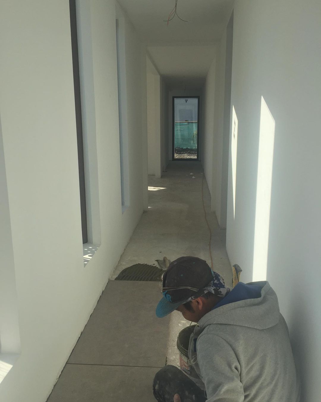 Construcción de repisa en hueco de muro de ducha del baño principal.